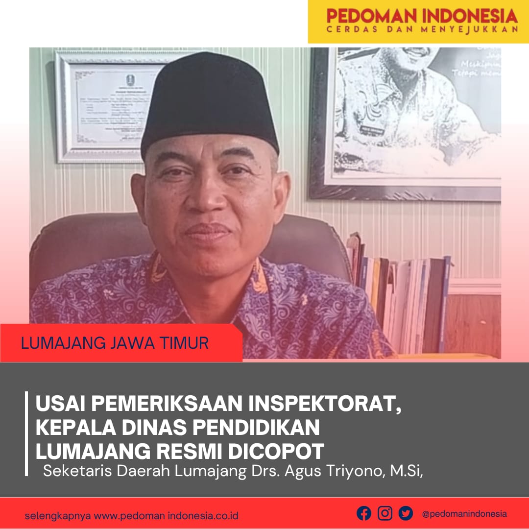 LUMAJANG, PedomanIndonesia.co.id – Pemerintah Kabupaten Lumajang resmi memberhentikanNugraha Yudha Mudiarto dari jabatannya sebagai Kepala Dinas Pendidikan dan Kebudayaan setelah dianggap terbukti melanggar disiplin Pegawai Negeri Sipil (PNS). Yang bersangkutan dinilai melakukan pelanggaran dalam kategori berat, yakni tersandung kasus dugaan perselingkuhan. Bahkan, dugaan ini juga sudah dilakukan pemeriksaan oleh inspektorat Kabupaten Lumajang.