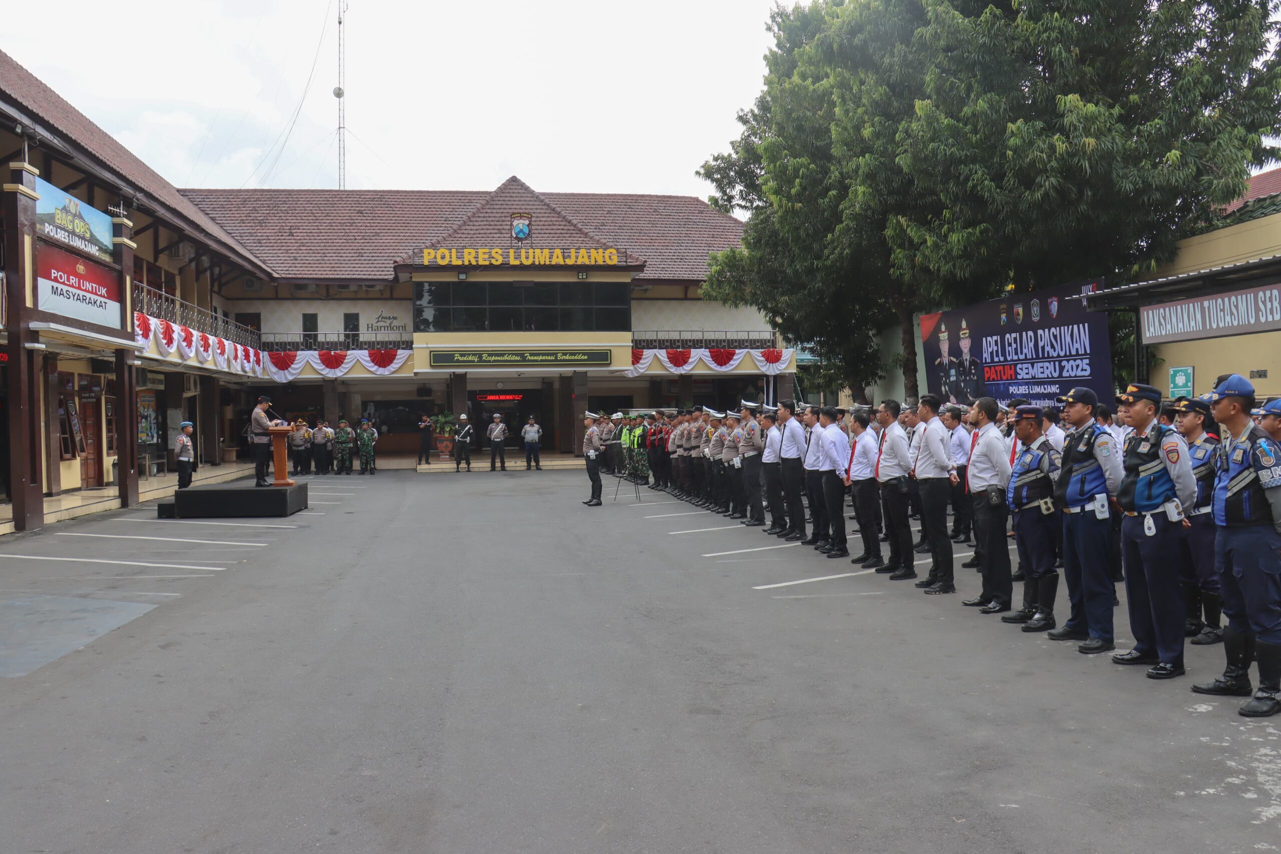 PEDOMANINDONESIA.CO.ID, LUMAJANG – Bertempat di halaman Mapolres Lumajang, Apel Gelar Pasukan Operasi Kepolisian Kewilayahan Patuh Semeru 2025, Senin (14/7/2025) pagi digelar. Dipimpin langsung oleh Kapolres Lumajang AKBP Alex Sandy Siregar, S.I.K, S.H, M.H, diikuti oleh Wakapolres, para pejabat utama (PJU) Polres Lumajang, Kodim 0821, Dinas Perhubungan, Satpol PP, dan seluruh personel yang terlibat.