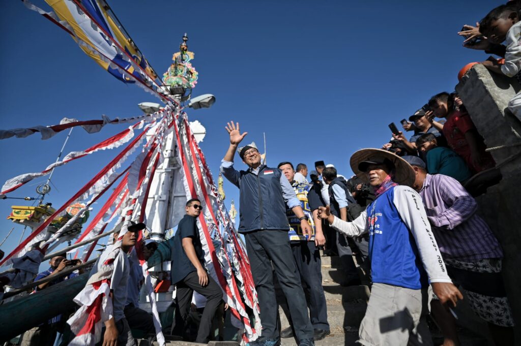 BANYUWANGI – Bacapres Anies Baswedan melanjutkan rangkaian kegiatannya di Banyuwangi dengan mendatangi Tempat Pelelangan Ikan (TPI) Pelabuhan Muncar. Di tempat tersebut Anies berbincang dengan para nelayanan dan pedagang ikan asin.